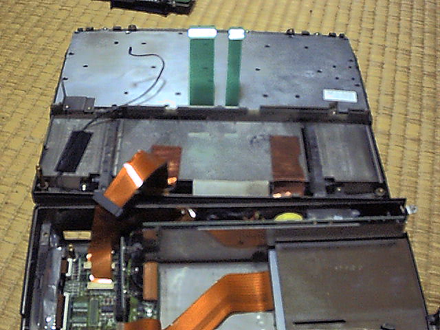分裏面の底面側奥の左側から、PCカードスロット、HDD、FDD。